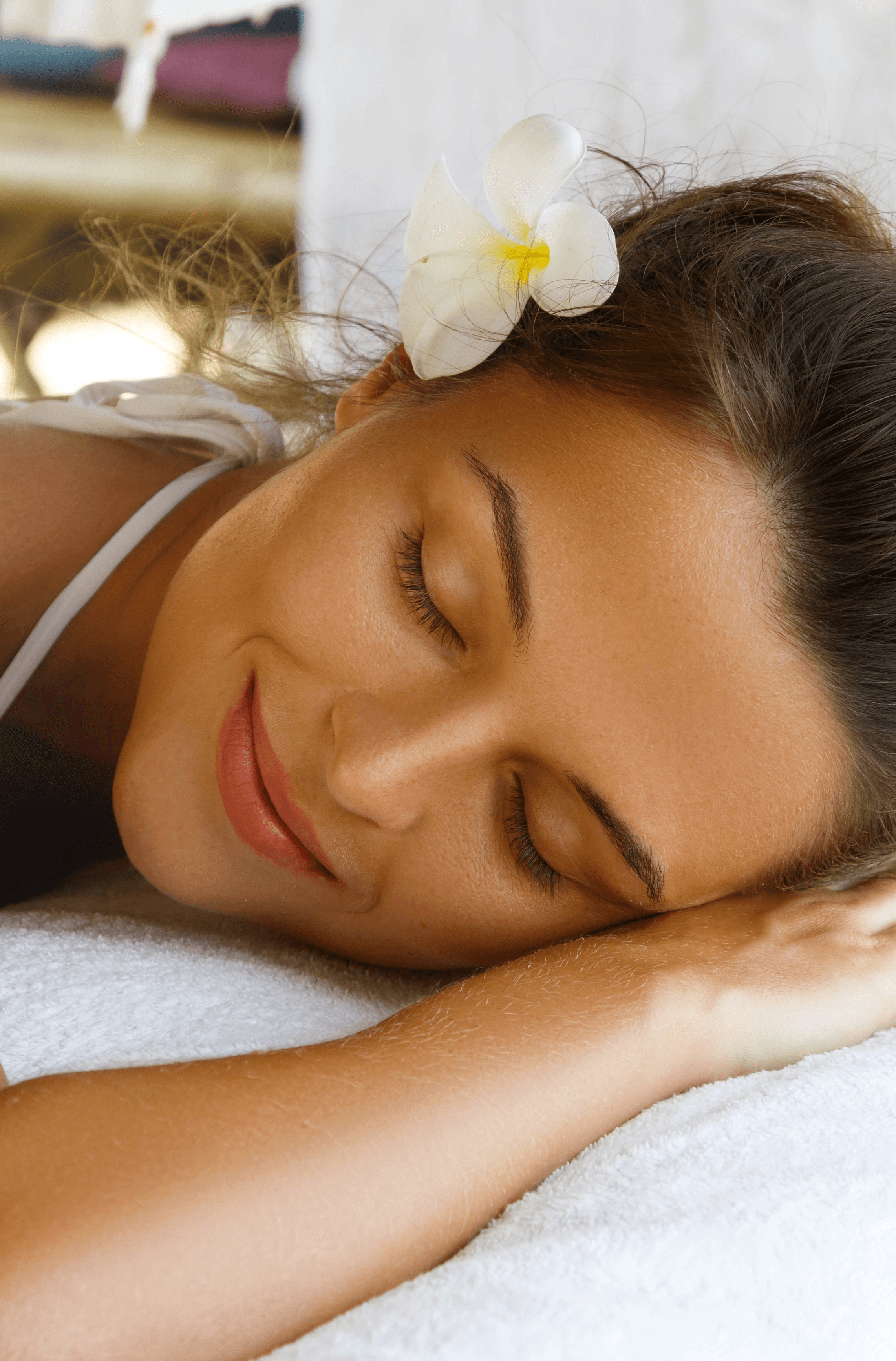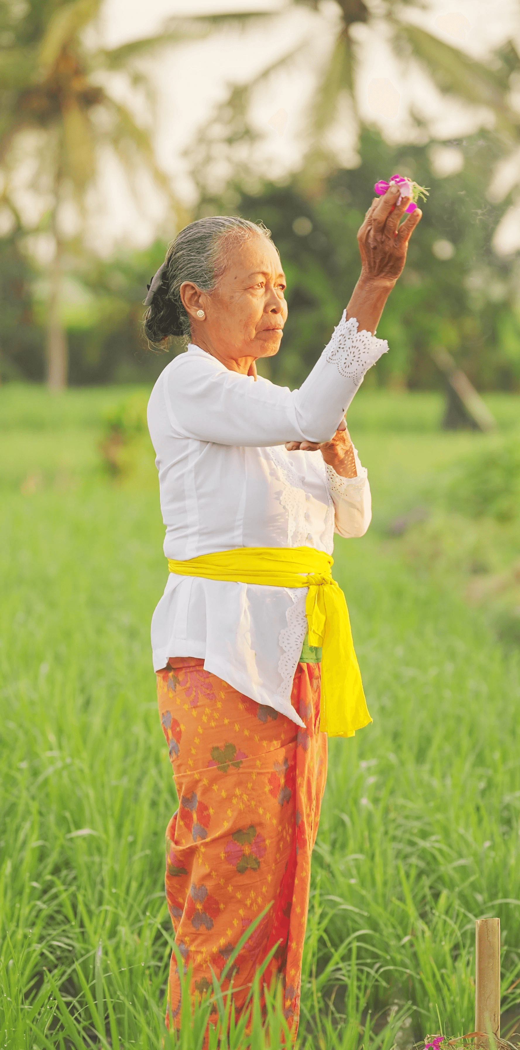 Across the island, frangipani trees shape the everyday landscape. They line walkways, frame courtyards, and appear in temples, homes, and hotels alike. The flowers are often worn in the hair - placed with care - becoming part of daily ritual and personal expression rather than decoration alone.